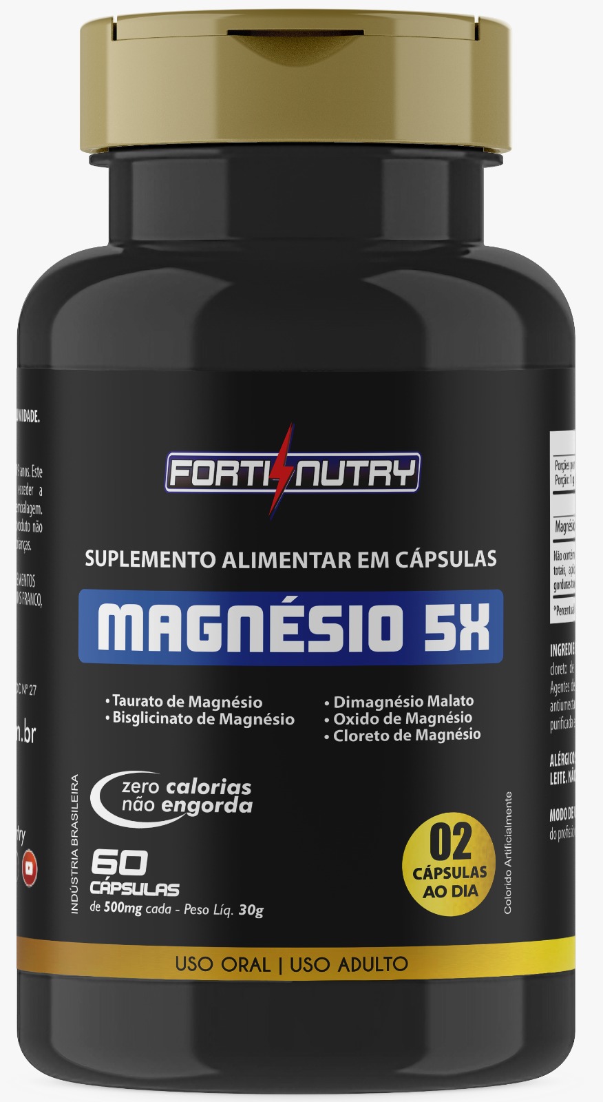 O Magnésio 5X Fortinutry é um suplemento poderoso que combina 5 formas de magnésio para proporcionar benefícios completos para o seu corpo. Essencial para a função muscular e a saúde do sistema nervoso, o magnésio ajuda a combater a fadiga e melhora o desempenho físico.