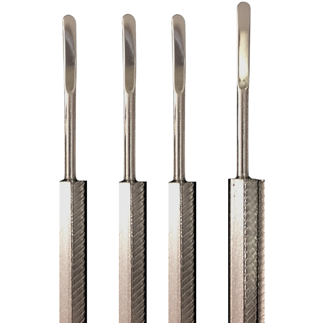 Instrumentos podológicos, utilizados para cortes de uma peça em substituição ao bisturi, garantindo mais precisão e segurança. Modificados com as nossas medidas, designs criados pelo Podólogo Maurélio Neto.